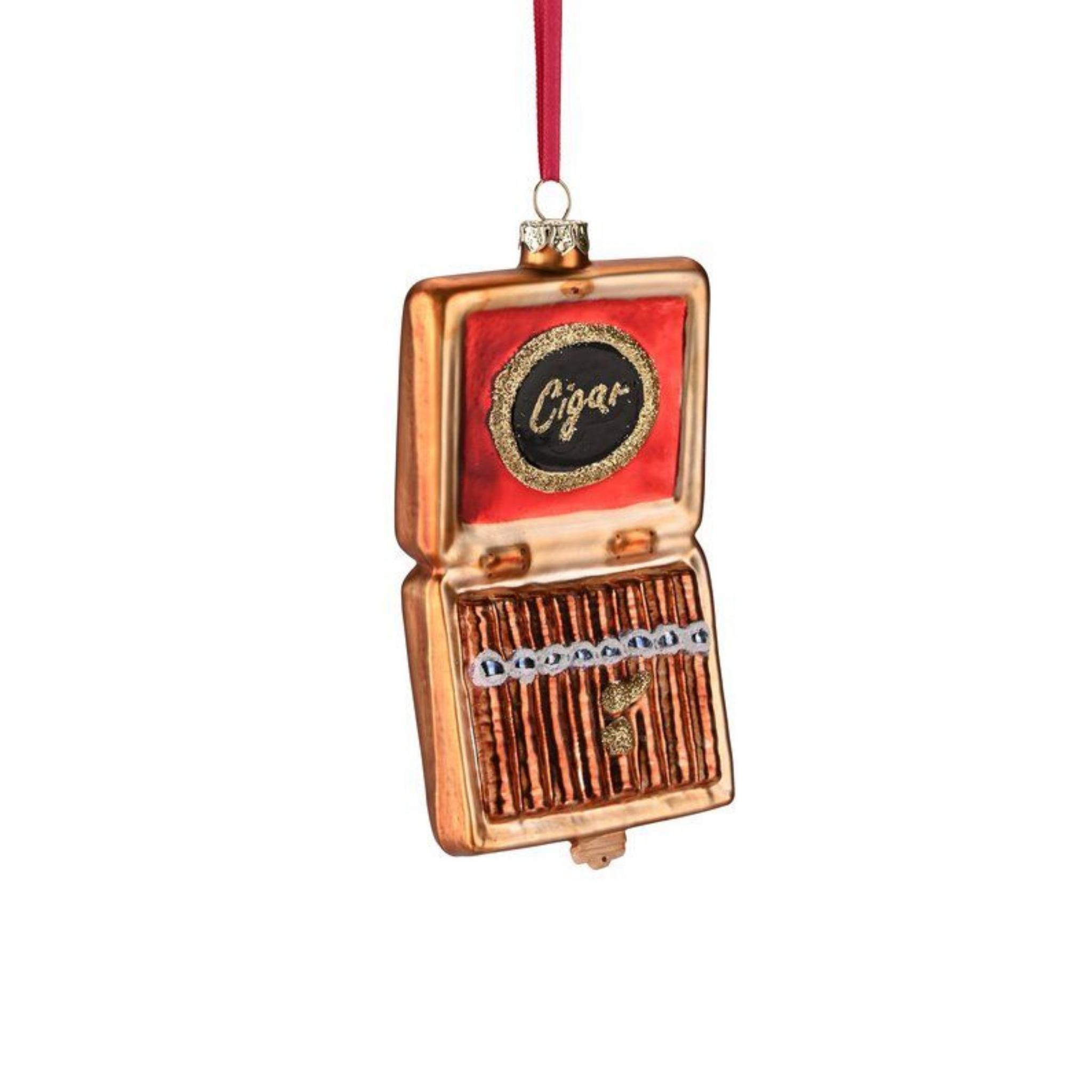 Ajoutez une touche d’élégance et de singularité à votre sapin de Noël avec notre suspension en forme de boîte à cigares. Cette décoration festive allie le charme des fêtes à une esthétique raffinée, parfaite pour les amateurs de cigares. Cette suspension en verre saura capturer l’attention de vos invités tout en apportant une ambiance chaleureuse et sophistiquée à votre intérieur.