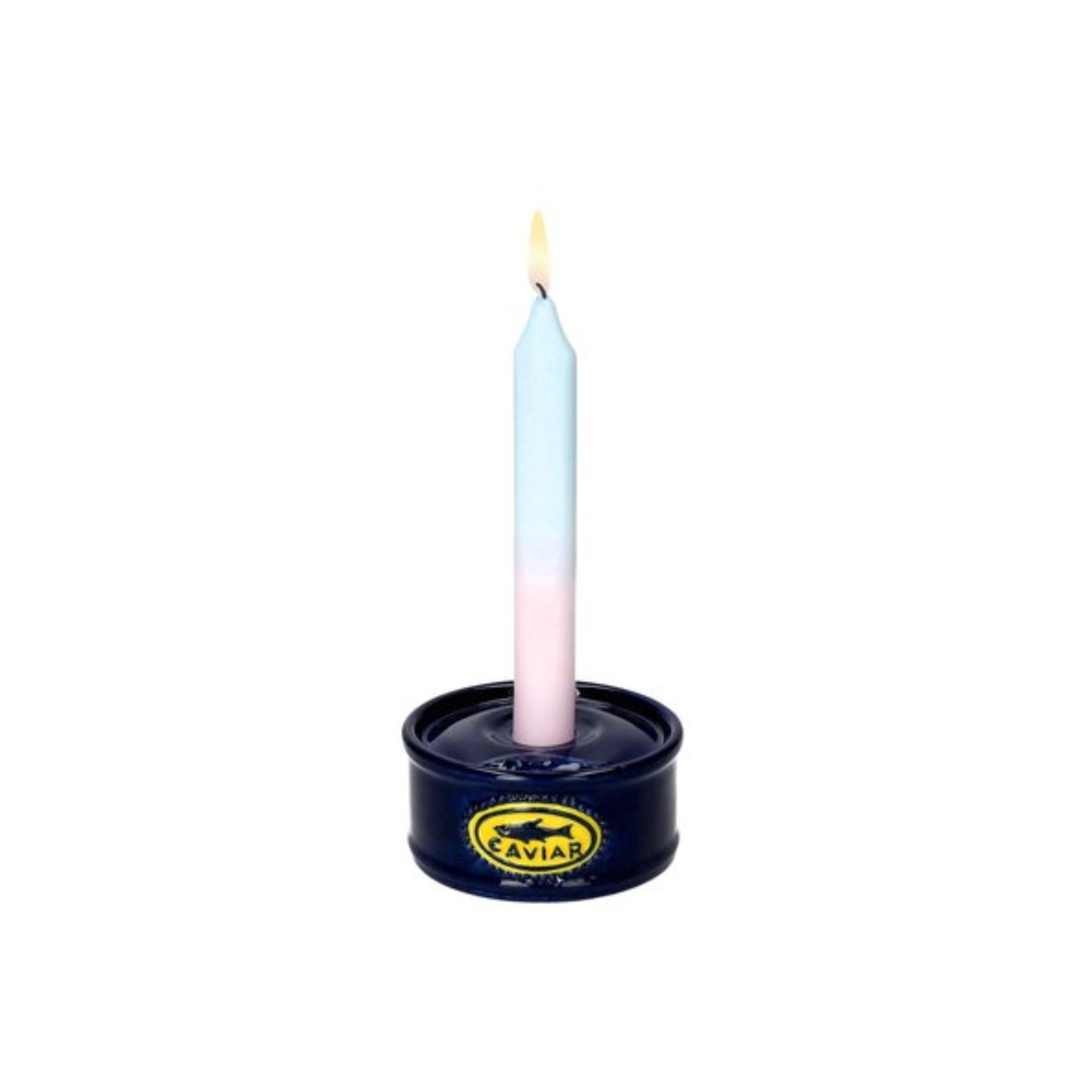 Faites pétiller votre intérieur avec créativité, humour et élégance ! Avec sa teinte bleu foncé profonde et sa finition impeccable, ce bougeoir se distingue par son design original inspiré d’une boîte de caviar. Il devient la véritable pièce maîtresse qui ajoute charme et fantaisie à n’importe quel espace. Que ce soit sur la table à manger, le buffet ou le rebord de fenêtre, son design ludique saura attirer tous les regards et provoquer des discussions. Conçu en céramique dolomite, cette décoration séduit par son esthétisme et sa robustesse. Sa surface lisse et brillante capte magnifiquement la lumière, mettant en valeur vos bougies. Avec un diamètre de 10 cm et une hauteur de 5 cm, il est parfait en pièce unique ou pour former un ensemble décoratif avec d’autres bougeoirs.
